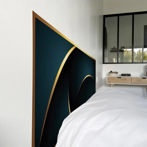 99Déco Tête De Lit Papier Peint Graphique Bleu Et Doré 180cm