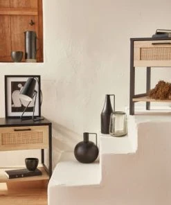 Une touche de naturel, une touche de modernité et voilà deux jolies tables de chevet en cannage. Posez vos lunettes et votre lampe de chevet sur le plateau et rangez vos livres du moment et autres accessoires dans l’espace de rangement qui se ferme avec une porte en cannage. Le reste de la table est en décor bois pour s’accorder parfaitement avec la porte. Ce lot de 2 tables de chevet en cannage possède une porte réversible et vous avez également la possibilité de choisir l’orientation de la cette porte.