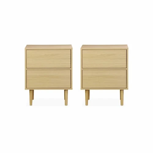 Fonctionnelles et esthétiques découvrez les tables de chevet Mika. Intemporelles, elles sauront trouver leur place dans une décoration au style contemporain. On craque complètement pour leurs tiroirs boisés et leur piètement en bois de pin qui leur donne tout leur charme. Leur 2 tiroirs push vous permettront de ranger facilement vos objets du quotidien. Pour parfaire votre déco, n’hésitez pas à placer sur leur plateau supérieur une jolie lampe de chevet ainsi que d’autres accessoires.