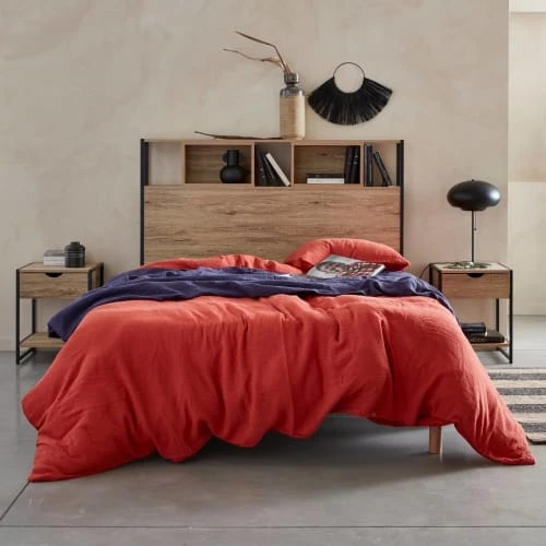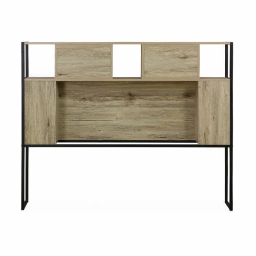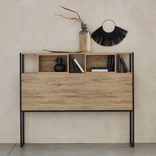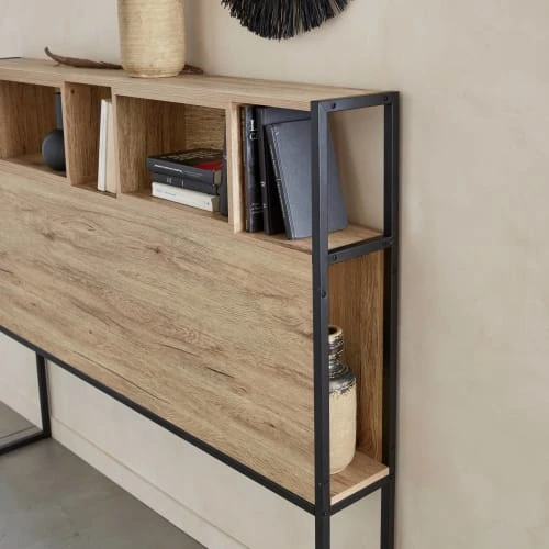 Avec ses sept compartiments de rangement au décor bois, vous aurez de nombreuses possibilités pour disposer vos objets de décoration. Les deux niches vous donneront l’occasion de présenter vos livres avec élégance. Placez des plantes et des bougies sur les côtés de la tête de lit, et des lampes dans les rangements situés de part et d’autre du meuble. Enfin, placez quelques cadres sur le dessus de son plateau pour compléter votre décoration !