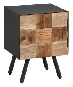 matière : Façades en palissandre massif, finition vernis naturel nitro-cellulosique, aspect bois vieilli brossé.
