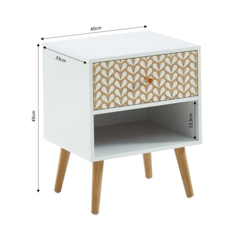 Outre son design, on aime la praticité de cette table de chevet, notamment grâce à son tiroir à rails coulissants et sa niche de rangement. Vous pourrez ainsi ranger toutes vos affaires telles que vos lunettes, votre livre du moment ou encore votre chargeur de téléphone.