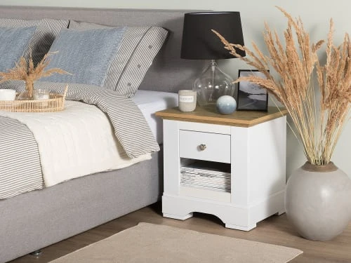 Beliani Table De Chevet Effet Bois Clair Et Blanche 2 Tiroirs