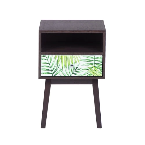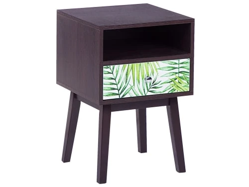 Beliani Table De Chevet Effet Bois Foncé Et Noire Avec Tiroir