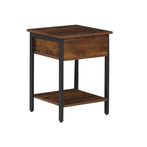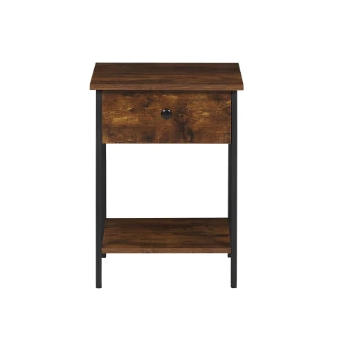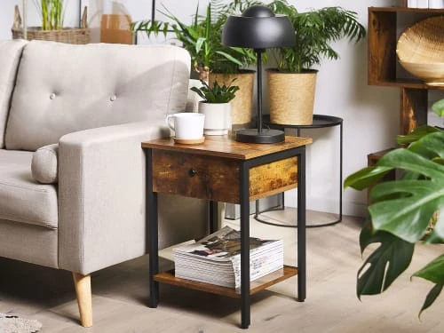 Beliani Table De Chevet Avec Tiroir Gris Et Effet Bois Clair