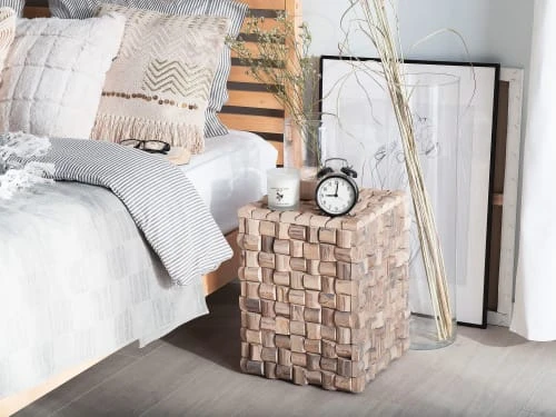 Beliani Table De Chevet Avec Tiroir Gris Et Effet Bois Clair