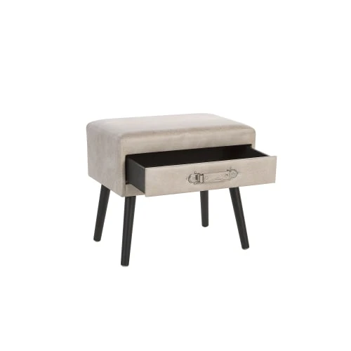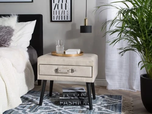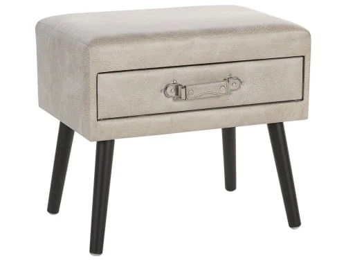 Beliani Table De Chevet Avec Tiroir Gris Et Effet Bois Clair