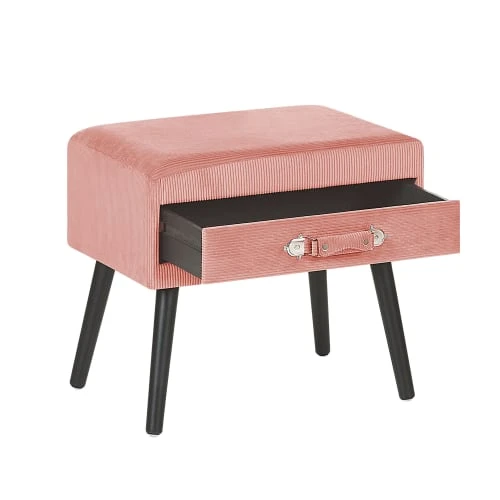 Beliani Table De Chevet Effet Bois Foncé Et Noire Avec Tiroir