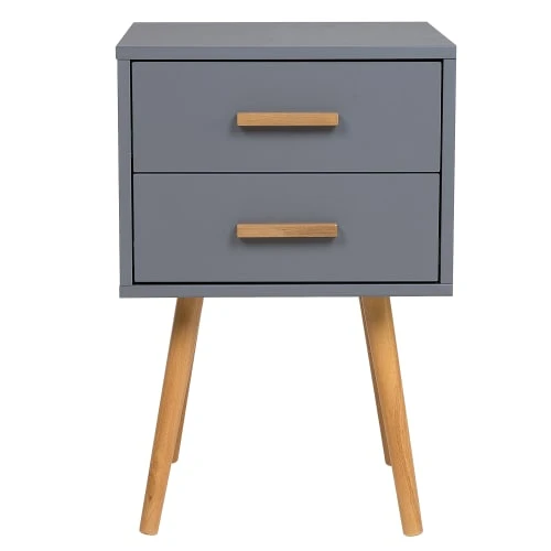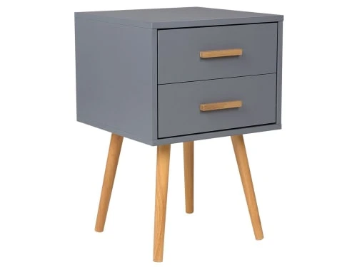 Beliani Table De Chevet Avec Tiroir Gris Et Effet Bois Clair
