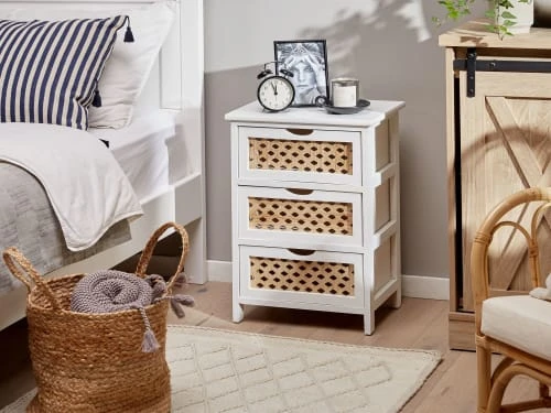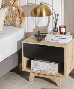 Beliani Table De Chevet Avec Tiroir Gris Et Effet Bois Clair