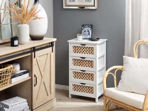 Beliani Table De Chevet Avec Tiroir Gris Et Effet Bois Clair