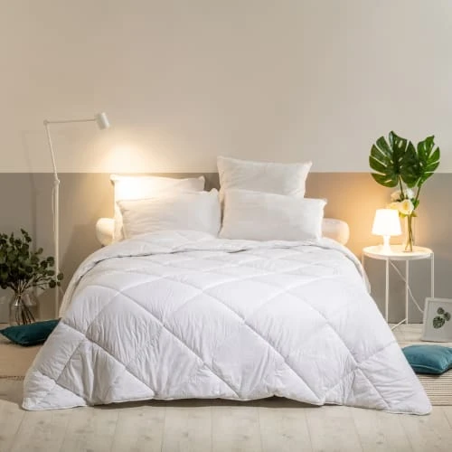 Le piquage en losange maintient parfaitement le garnissage, qui diffuse une chaleur homogène et douillette. Saine et pratique, cette couette constitue votre meilleure alliée pour des nuits de sommeil paisibles et chaudes.