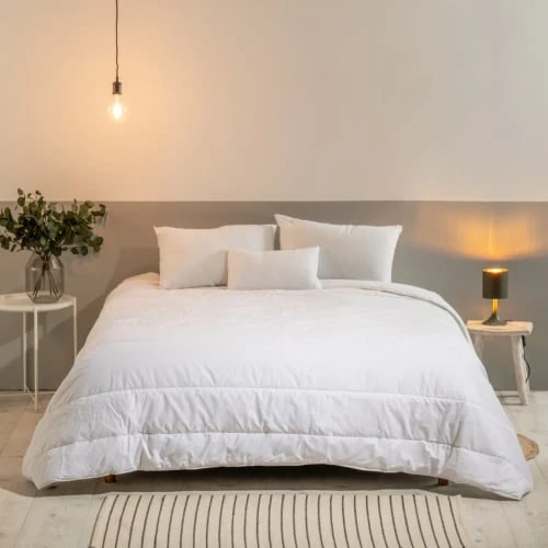 Fine et ultra-légère, la couette Spéciale Été est conçue pour vous offrir confort et aération optimale lorsque les températures sont élevées. Son enveloppe en coton – matière naturellement respirante – lui confère fraicheur et douceur : l’idéal pour bien dormir quand les températures grimpent ! Si elle est particulièrement indiquée lors de la période estivale, elle constitue aussi une excellente couette d’appoint en hiver : glissez-la dans la housse avec votre couette hivernale habituelle, et boostez ainsi ses performances, pour une chaleur renforcée !