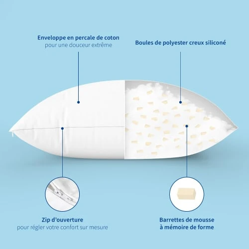 Pour profiter de l’extrême douceur et du confort ergonomique du MEMOIRE DE FORME MIXTE ANTI-ACARIENS à un tarif plus avantageux, craquez pour ce pack composé de deux oreillers.