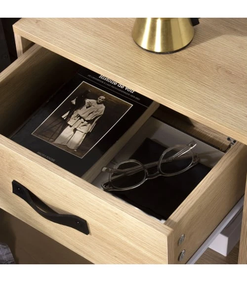 Angel Cerda Table De Chevet Blanc Brillant Deux Tiroirs Et Acier