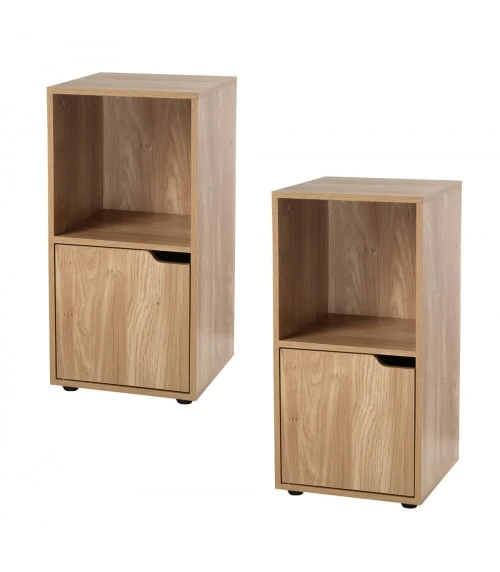 Fonctionnel, le meuble case se décline en table de chevet ou en meuble de rangement pour bureau…Craquez pour ce lot de 2 tables de chevet 2 cases décor bois 1 porte et offrez-vous un espace de rangement très élégant.Ce meuble 2 cases décor bois 1 porte est un subtil mélange de moderne et d’ancien très chic. Grâce à son look et sa forme rectangulaire, il s’intégrera parfaitement à la décoration de votre maison.Très pratique, ce meuble case décor bois dispose d’une porte apportant une vraie touche de grâce qui permettra entre autre de dissimuler des affaires.Matières : Panneaux de particules décor boisDimensions : L 30.7 cm x P 29 cm x H 61.6 cm