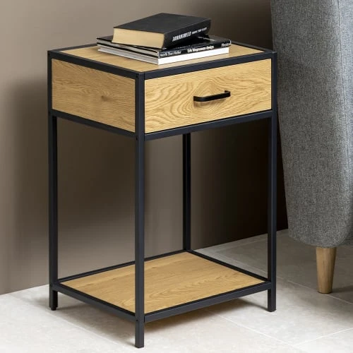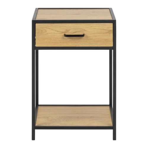 Offrez-vous cette jolie table de chevet industrielle. Elle saura apporter une touche tendance à votre chambre avec son mélange de bois et métal. Vous pourrez y aposer une jolie lampe dessus, ranger vos affaires dans le tiroir et même mettre vos livres ou de la déco sur l’étagère du dessous. Cette table de chevet pratique et moderne ajoutera du cachet à votre intérieur !