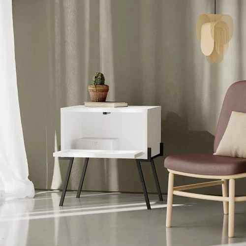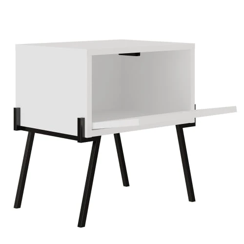 Angel Cerda Table De Chevet Blanc Brillant Deux Tiroirs Et Acier