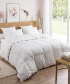 Composition du tissu : 100% coton rayé bleu – Composition du garnissage : 100% plumettes