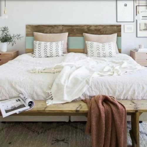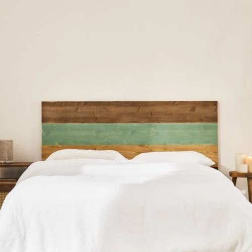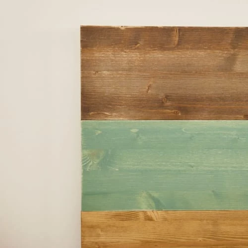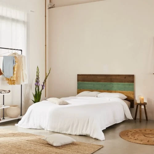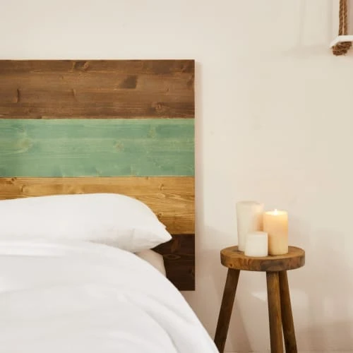 La tête de lit Nala est consituée de bois de sapin massif, avec une finition rustique qui mélange la couleur du bois avec des motifs ethniques bleus. Elle est composée de lattes de bois disposées horizontalement. Son design est simple, mais il habillera votre pièce en lui procurant de la personnalité tout en augmentant la sensation d’espace. C’est une pièce unique et imposante tout en occupant peu d’espace qui saura créer une atmosphère pleine de paix, parfaite pour s’endormir en fin de journée.