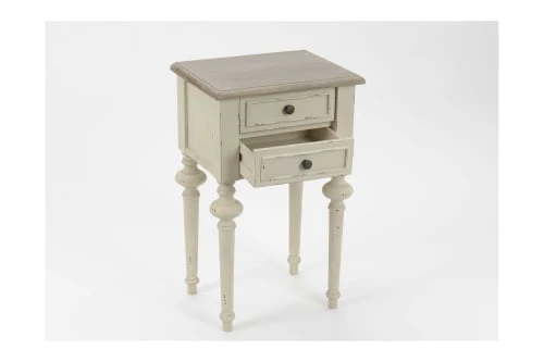 HELLIN Chevet 2 Tiroirs Couleur Crème Antique L40cm X L30cm X H65cm