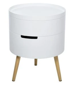 – Style scandinave original en rond et bicolore blanc bois de pin naturel avec pieds effilés, inclinés d’une grande élégance