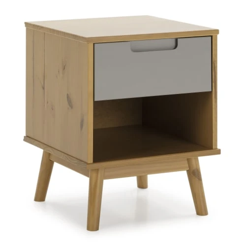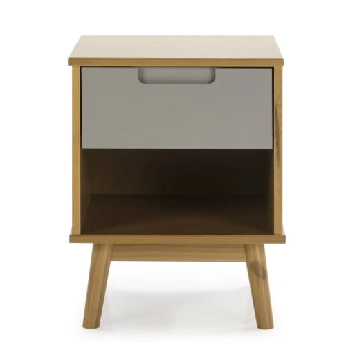 Structure principale en couleur chêne avec des tiroirs en gris et ouverture avec poignée allongée qui lui apportera une touche élégante au meuble avec de lignes droites et simple.