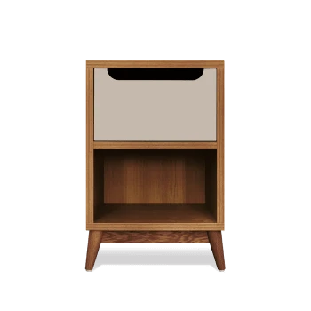 Notre table de chevet se décline dans deux styles : en chêne naturel pour sa version la plus claire et en chêne miel pour un bois plus sombre.