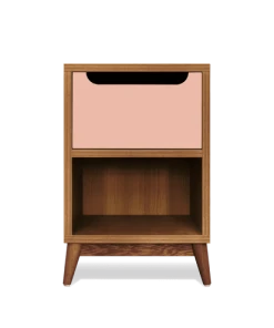 Notre table de chevet se dĂ©cline dans deux styles : en chĂȘne naturel pour sa version la plus claire et en chĂȘne miel pour un bois plus sombre.