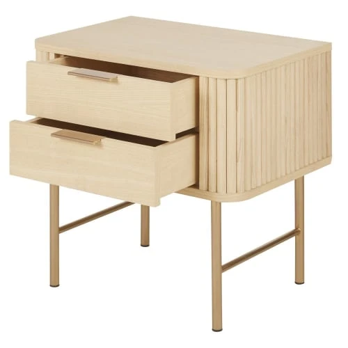Panneaux de côté, de dos et fond des tiroirs : panneaux de fibre de moyenne densité, placage d’érable finition vernis acrylique transparent