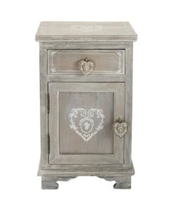 Romantique à souhait, la table de chevet CAMILLE apportera de la douceur dans votre chambre ! Sa teinte légèrement grisée avec ses poignées en forme de cœur insuffle une ambiance délicate : idéal pour venir compléter une chambre dans la tendance shabby chic ! Côté rangement, vous disposerez d’un tiroir et d’une porte pour y accueillir tous vos accessoires. Un conseil déco ? Sublimez cette table de nuit d’une lampe de chevet dans les tons pastels !</p>