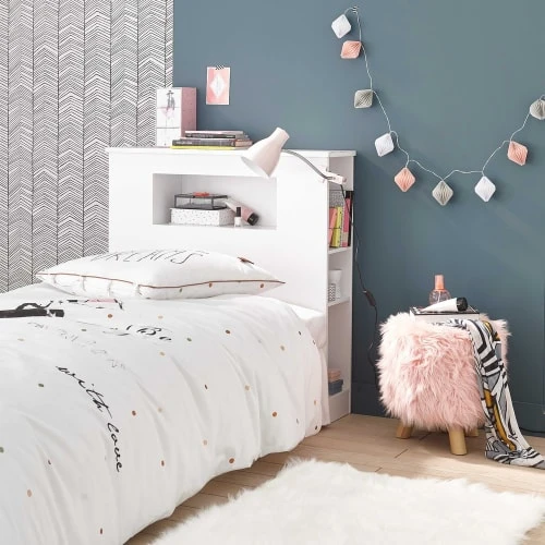 Moderne et fonctionnelle, cette tête de lit blanche TONIC apportera une note de confort supplémentaire à la chambre de votre enfant. Astucieuse, cette tête de lit 90 pourra également servir de bibliothèque avec 3 niches de rangement de chaque côté et une niche centrale pour avoir tout à portée de main. Le détail déco : pratiques, les niches de rangement intégrées.