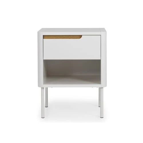 Angel Cerda Table De Chevet Blanc Brillant Deux Tiroirs Et Acier