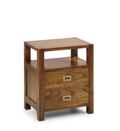 La table de chevet de style colonial de la collection star a 2 tiroirs et un espace de rangement idéal. Elle est fabriquée à la main en bois mindi massif et des accessoires en bronze. Aucun assemblage requis. Une combinaison parfaite de design et de fonctionnalité.