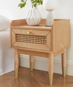 Drawer Table De Chevet 1 Tiroir En Bois Et Cannage Bois Clair