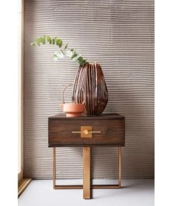 Kare Design Table De Chevet 1 Tiroir Rétro Marron Et Acier Doré