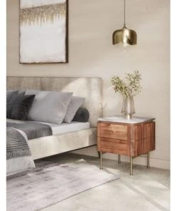 Kare Design Table De Chevet 2 Tiroirs En Peuplier Et ChĂȘne Brun