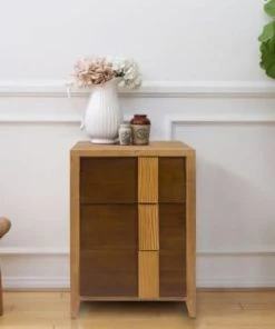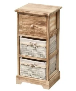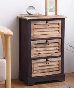 Mobili Rebecca Table De Chevet 3 Tiroirs En Bois Naturel Et Noir