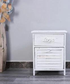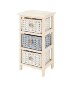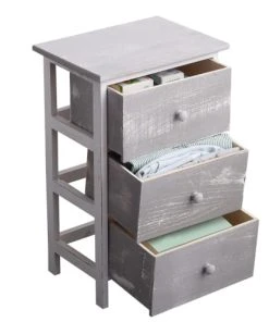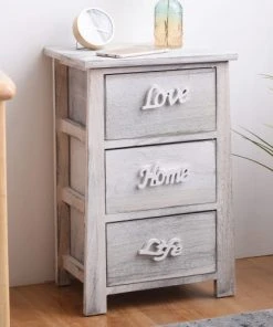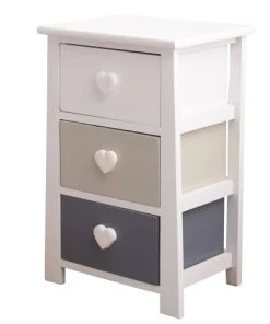 Mobili Rebecca Table De Chevet Avec 3 Tiroirs En Bois Gris Et Blanc