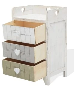 Mobili Rebecca Table De Chevet Avec 3 Tiroirs En Bois Brun Et Blanc