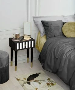 RNT By Really Nice Things Table De Chevet En MDF Imprimé à Franges Blanches Et Noires.