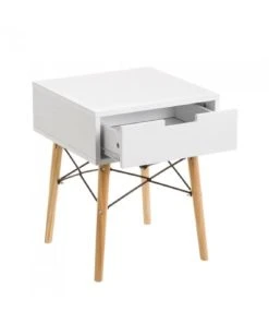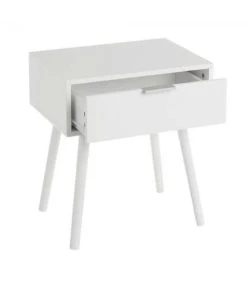 Unimasa Table De Chevet En Bois Et Métal Blanc 1 Tiroir 40x35x47cm
