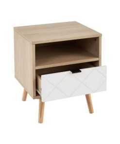 Unimasa Table De Chevet Bois Et Blanc 1 Tiroir Losanges 40x35x49cm