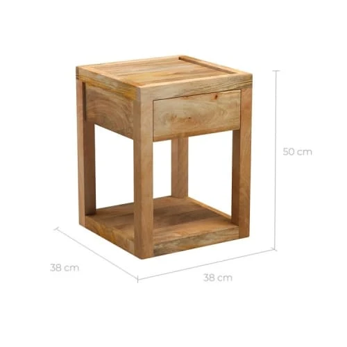 La couleur de bois utilisé pour la fabrication de cette table de chevet peut varier d’un produit à un autre car chaque planche en bois massif est unique et dépend de multiples facteurs pouvant influer sur le coloris final (noeuds, plan de coupe, séchage…).