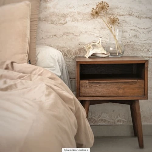La couleur de bois utilisé pour la fabrication de cette table de chevet peut varier d’un produit à un autre car chaque planche en bois massif est unique et dépend de multiples facteurs pouvant influer sur le coloris final (noeuds, plan de coupe, séchage…).
