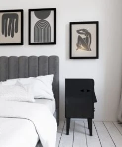 Table de chevet fabriquée de façon artisanale en planche de bois de pin provenant de bois locaux et respectueux.