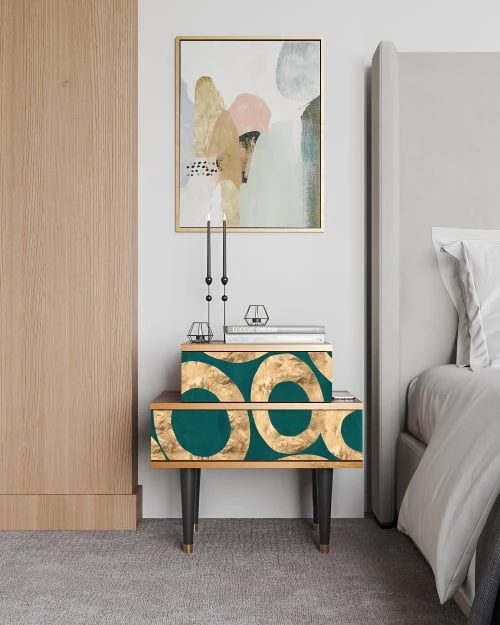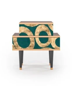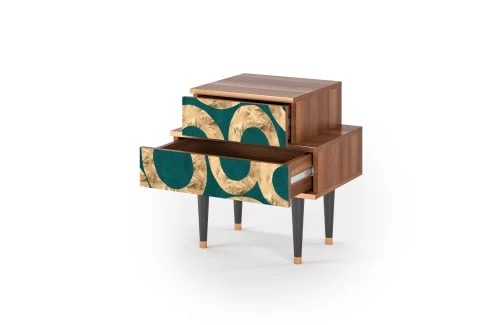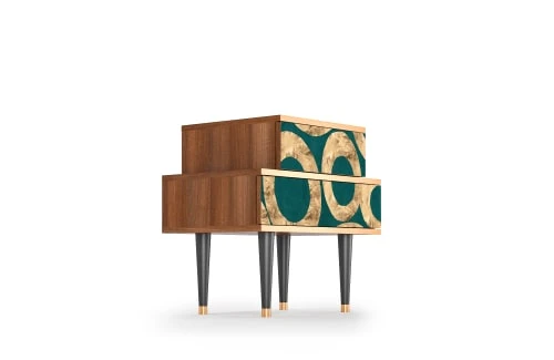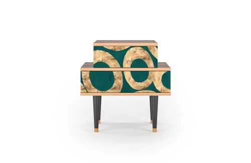 Pieds : Bois naturel avec extrémités en cuivre 25 cm de hauteur