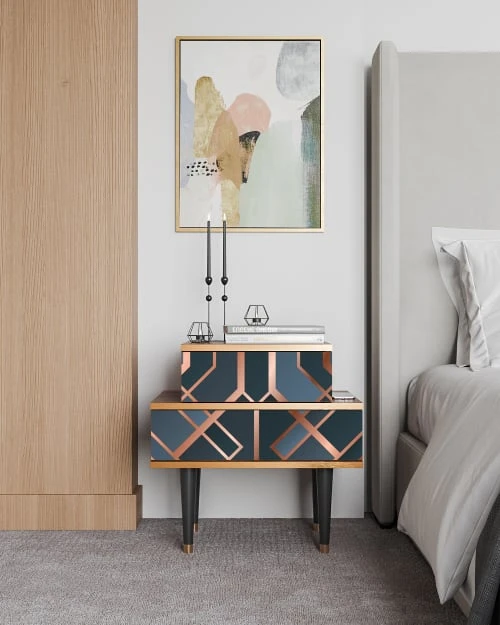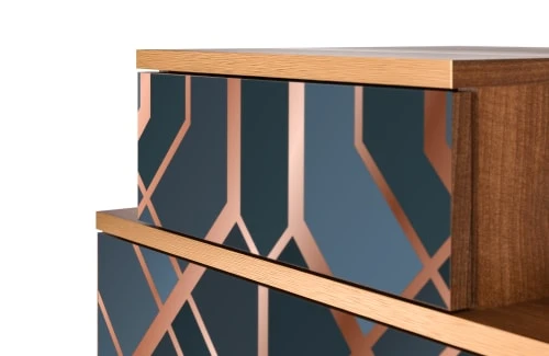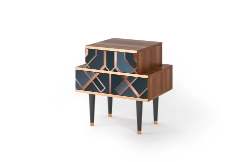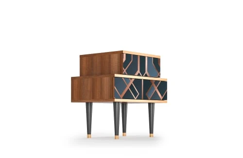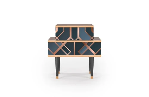 Pieds : Bois naturel avec extrémités en cuivre 25 cm de hauteur