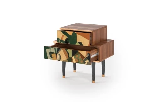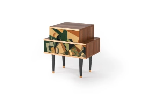 Pieds : Bois naturel avec extrémités en cuivre 25 cm de hauteur