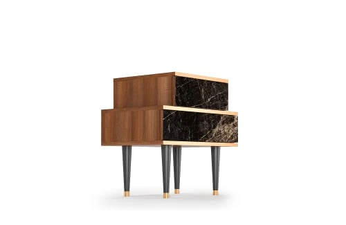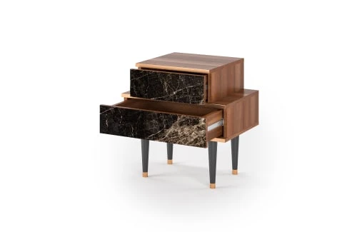Pieds : Bois naturel avec extrémités en cuivre 25 cm de hauteur